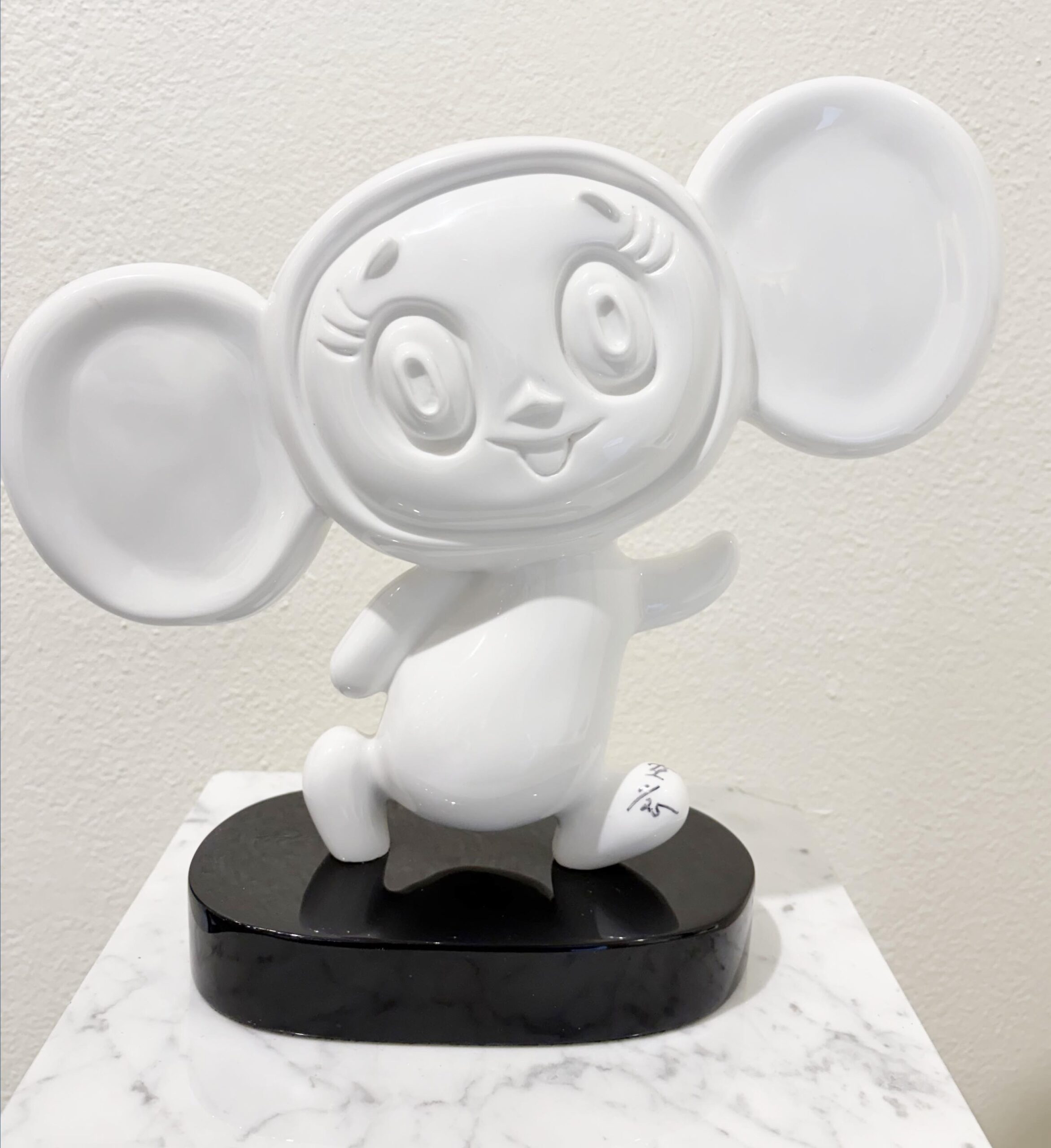 This charming Lucite sculpture depicts the beloved character Cheburashka, reimagined with contemporary elegance by artist Irina Daylene. Crafted with exceptional clarity and a flawlessly smooth finish, the transparent material captures light beautifully, giving the piece a luminous, almost ethereal presence. Daylene infuses the work with energy and strength while preserving Cheburashka’s playful spirit and nostalgic warmth. The sculpture’s clean lines and polished surface highlight both the character’s iconic silhouette and the artist’s meticulous technique. Perfect for collectors of modern figurative art, animation memorabilia, or distinctive decorative objects, this piece brings a joyful yet sophisticated accent to any interior.