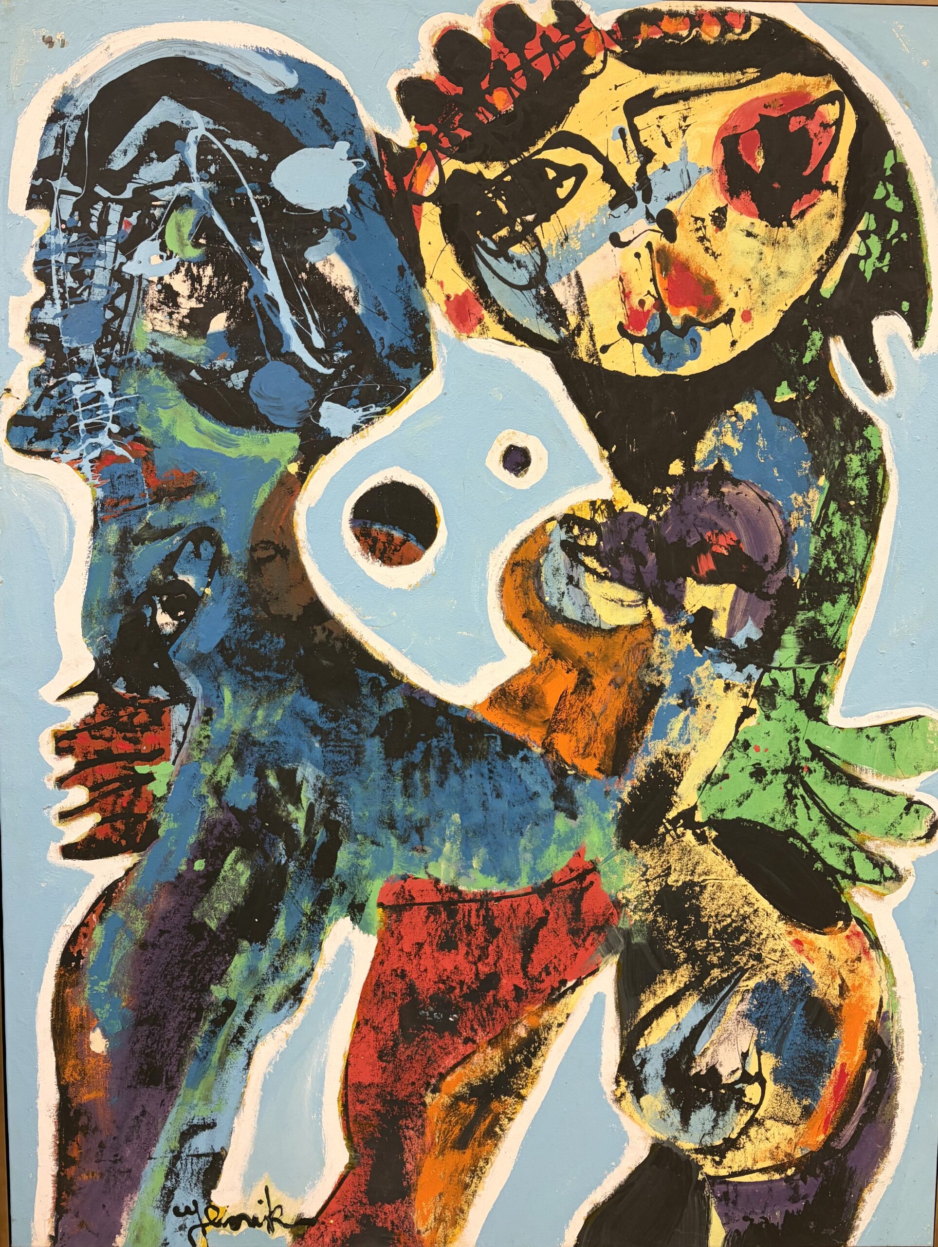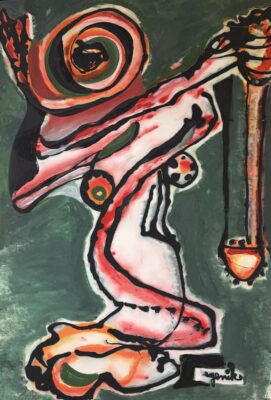 No question but the painting of Jenik Cook – and hardly less the work she realizes in other media (most notably ceramics) -is abstract-expressionist. But it is not necessarily Abstract Expressionist. That is, however much it may evince the DNA of mid-century American “action painting,” or even European counterparts such as tachism, l’art informel, or CoBrA, Cook’s art only incidentally revives the method, much less the look, of these bumptious, scrappy art movements. Rather, to power her vision, she goes back to the roots of gestural modernism, finding dancing line, elastic contour, and fervid color in surrealism, in fauvism, in expressionism itself. The painting of Pollock and Kline, and of Fautrier and Jorn, gives Cook permission to work unfettered like this, and gives us the context to comprehend fully – even to empathize kinesthetically with – what she does. But she is not emulating, much less imitating, Afro or James Brooks in her graceful, muscular paintings on paper or rehashing Sam Francis or André Lanskoy with the rhythmic clots and scatterings of pigment that collect on her canvases (well, on a wide variety of more-or-less canvas-like support material). Look instead to Miro, Masson, Marc, or Münter, Pechstein or Picasso, Marcks or Matisse, for Cook’s sources.